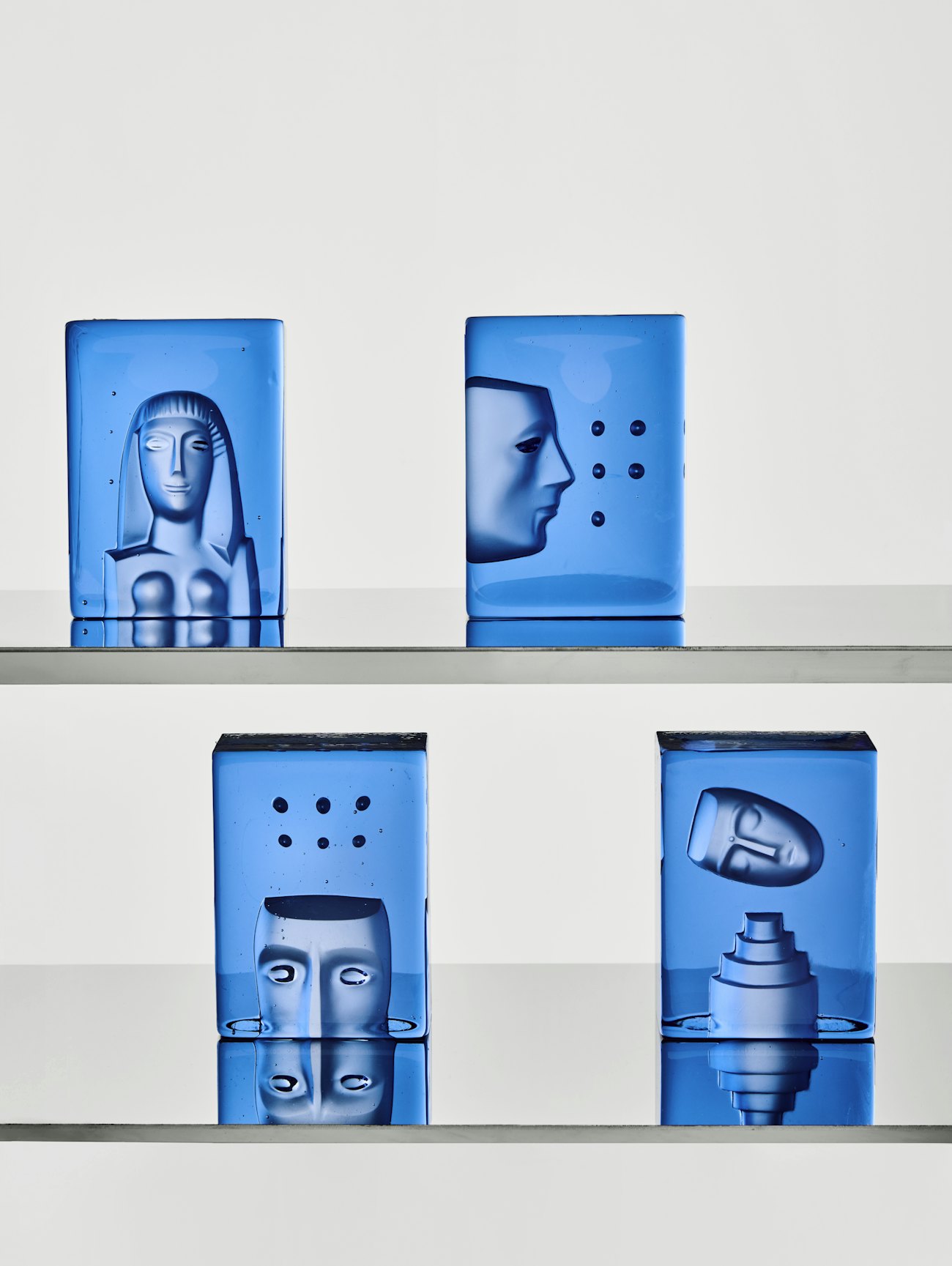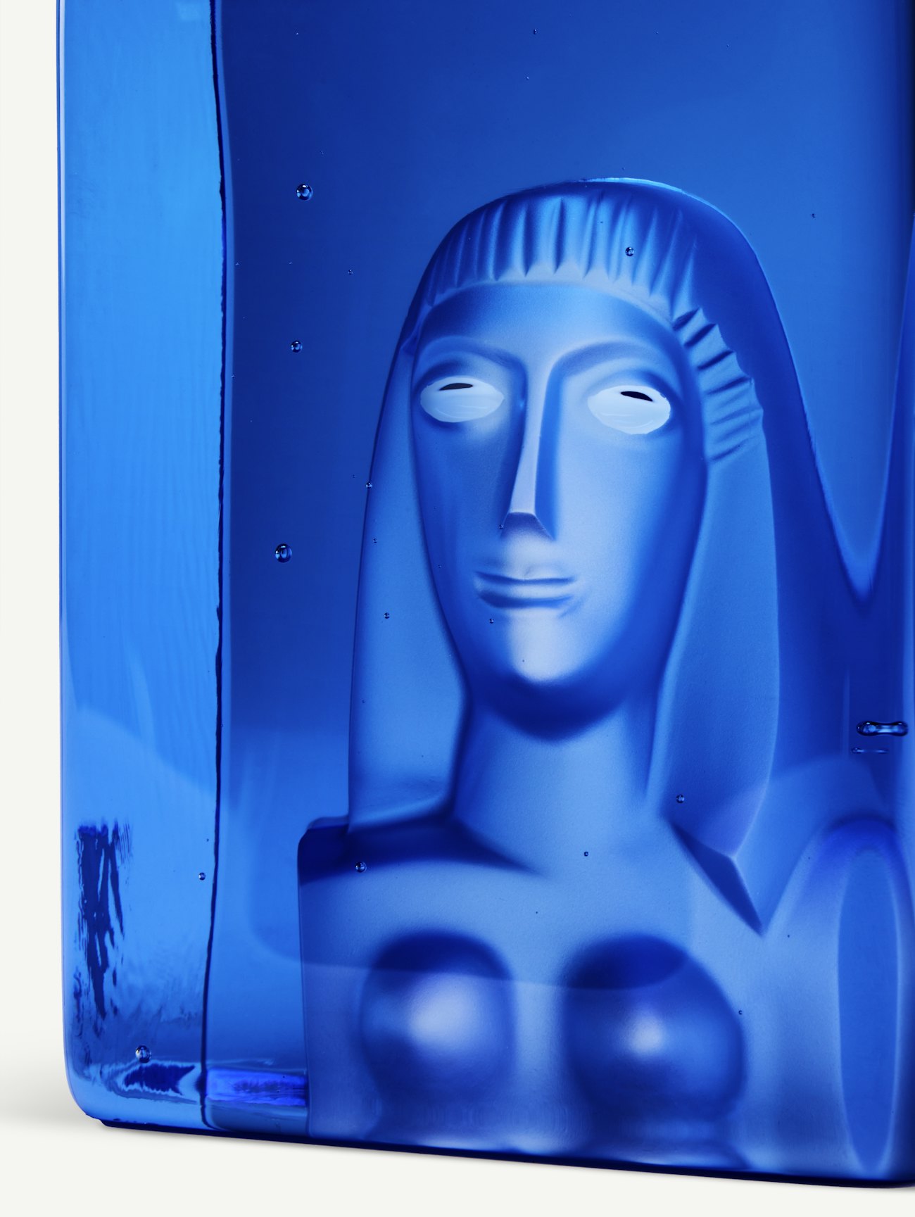 Azur is cast in graphite mold at Kosta Glassworks. The mold has an impression of one of Bertil Vallien's characteristic faces that has been blasted. The 2025 series is made in "Vallien blue" as the blue color has come to be known. "Blue is my favorite color, but it's not just a color, blue is a state of mind," as Bertil Vallien says.