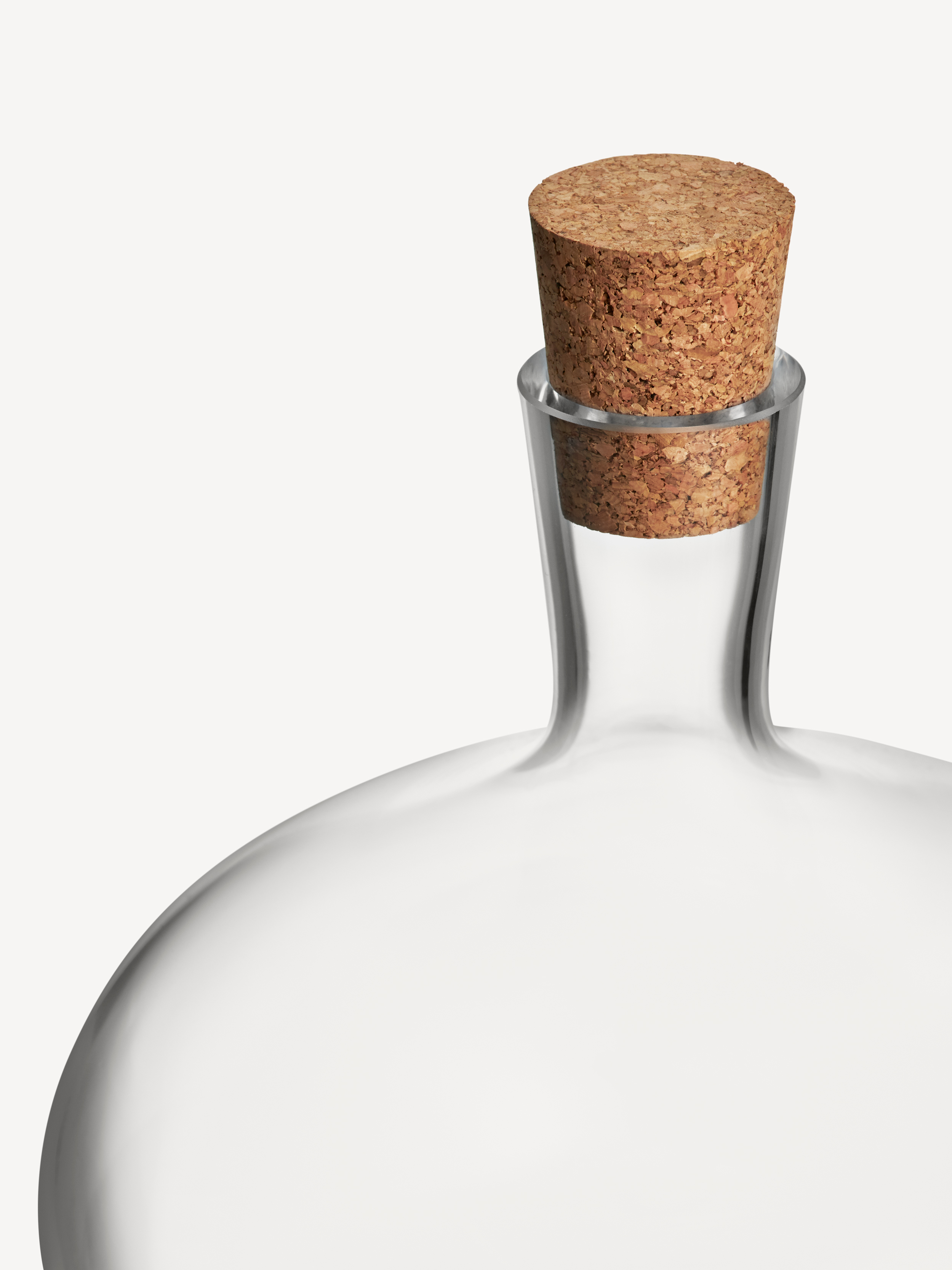 Like a big, clear soap bubble frozen in time, Bod balances on its foot. The bottle works great simply as decoration, its glass beautifully interacting with any and all light. At the same time, the cork hints at a functional side; a creative bubble for you to fill with the drink that suits the moment. Design by Matti and Simon Klenell.