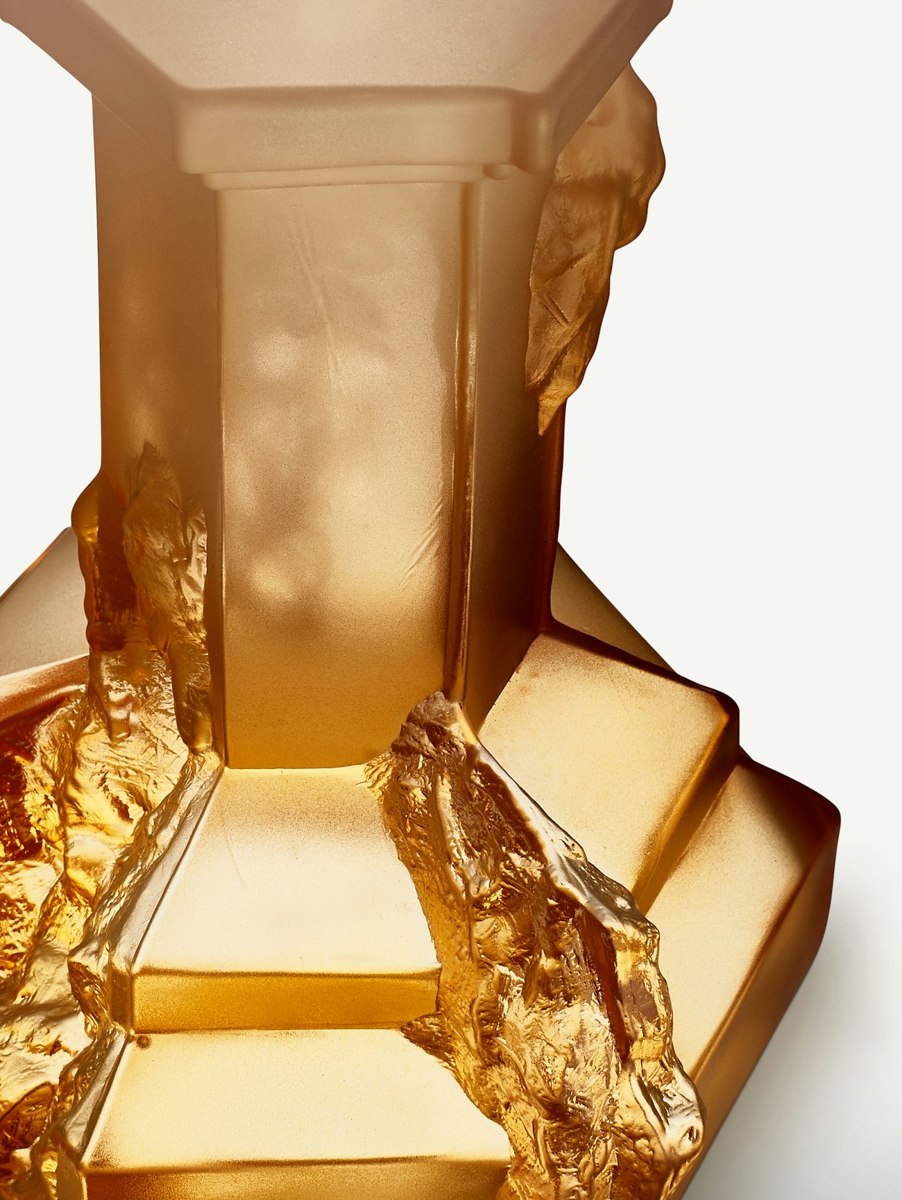 The Rocky Baroque series from Kosta Boda is an equally rebellious and playful remix of the classic column. Monumental lines collide with pop colors and raw, angular surfaces in this unique series of candleholders. Not least in this high, amber candlestick. Design by Hanna Hansdotter.